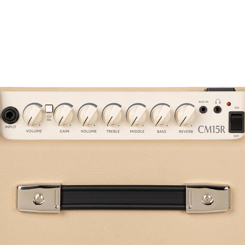 he Cort CM15R offer the same versatile tone-shaping capabilities and powerful output while adding a touch of visual class to your home studio or the stage. Custom 8” speaker for the CM15R deliver warm and musical sound for both clean and overdrive sounds. The CM15R is ideal amplifiers for novice players to use for practicing as well as home recording and small venue performances for experienced players alike.