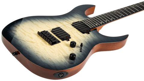 The S-500 is the pinnacle of the six string Spira lineup, meticulously designed for players who demand the highest level of performance and aesthetics. The S-500 features a luxurious mahogany body with a stunning quilted maple top, delivering both exceptional resonance and eye-catching beauty. The Canadian roasted maple neck and fretboard offer unmatched stability and a smooth, responsive playing experience, ideal for advanced techniques.